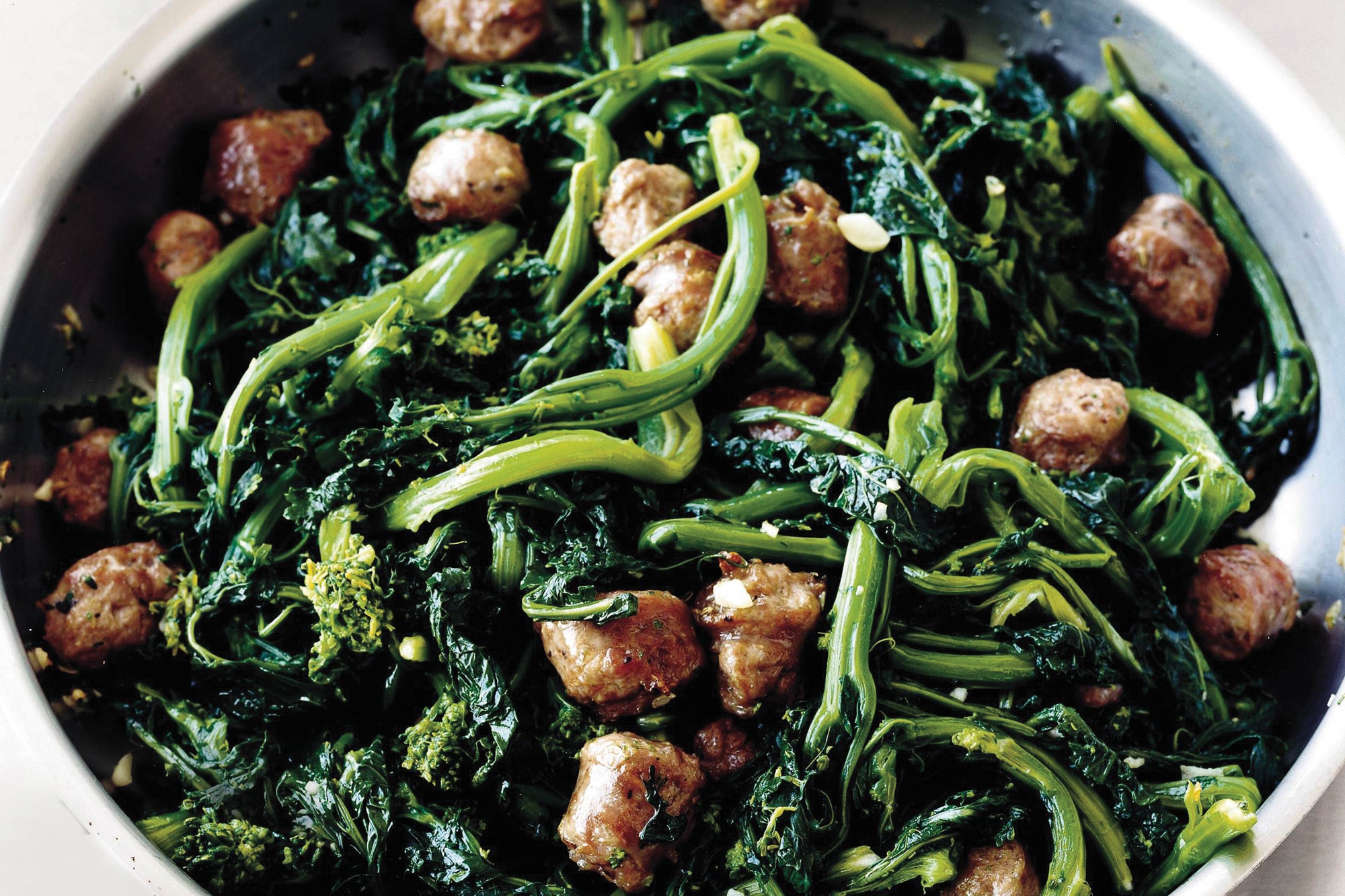 Well wonder no further. Listen to the audio pronunciation in English. Pasta with sausage and broccoli rabe.